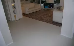 Укладка двухкомпонентной смеси (4) с кварцевыми добавками для получения гладкого, самонивелирующего синтетического пигментированного раствора.